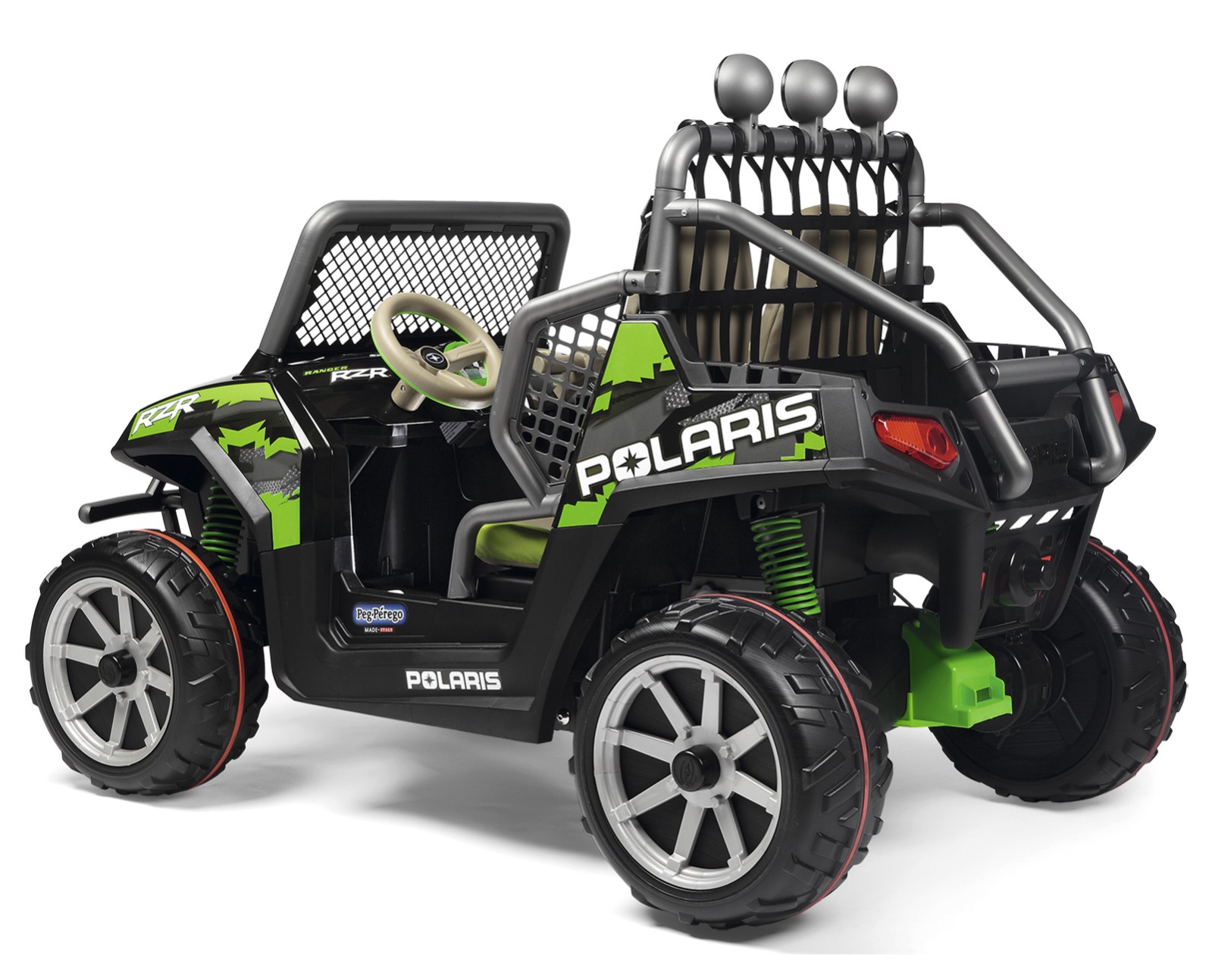 Polaris Ranger RZR Green Shadow este un vehicul off-road puternic cu doua locuri pentru copiii aventurosi de peste 6 ani, care circula cu viteze de pana la 10 km / h. Rotile puternice sunt potrivite pentru orice tip de teren si pot face fata cu usurința pantelor de pana la 17%, mergand chiar si pe terenul cel mai accidentat. Functioneaza cu o baterie reincarcabila de 24V / 12Ah / 300Wh. Agil si robust, pentru aventuri nelimitate!